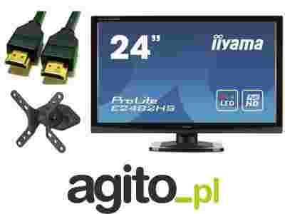 Zestaw: Monitor IIYAMA 23.6" LED Prolite E2482HS-GB1 + markowy uchwyt z regulacją + kabel HDMI