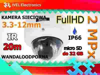 Uniwersalna kamera kopułowa 2 megapixelowa FULL HD, wandaloodporna z obiektywem zmienno ogniskowym i automatyczną przysłoną. Mechanicznym filtrem podczerwieni i promiennik o zasięgu 20m z diodami wysokiej mocy pozwalają kamerze prezentować dobrej jakości w całkowitej ciemności.