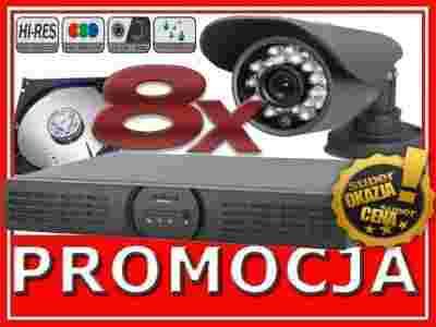 8 ZEWNĘTRZNYCH, KOLOROWYCH KAMER 1/3” SONY, 600 LINII TV Z PROMIENNIKAMI PODCZERWIENI