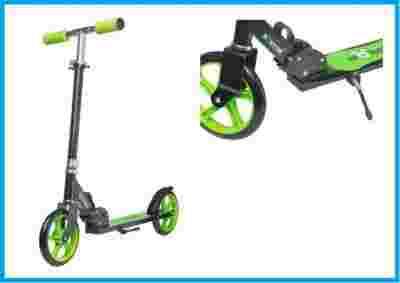 Hulajnoga jest składana, aluminiowa, posiada składana nóżkę boczną.