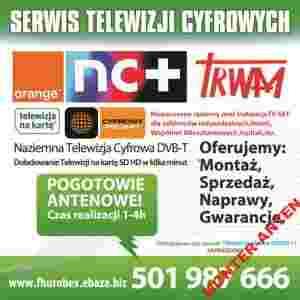 Profesjonalny montaż i ustawienia anten satelitarnych NC+, POLSAT CYFROWY, TV TRWAM,TNK,ORANGE TP ,naziemnych DVB-T oraz internetu satelitarnego TOOWAY - Montaż zestawów każdej z platform!!! oraz kilka satelitów jednocześnie - Montaż anten satelitarnych i ustawienie na wybranego satelitę - Telewizja kablowa Hotele/Hostele/Bloki/Domki itd. - Regulacje, ustawienia, poprawki, naprawy i konserwacja istniejących instalacji - Instalacje zbiorcze w domkach jednorodzinnych RTV,SAT - Instalacje zbiorcze w hotelach, pensjonatach, restauracjach domkach jednorodzinnych/wielorodzinnych oraz blokach (projekty i wykonawstwo) - Rozbudowa i modernizacja istniejących instalacji - Rozdzielanie sygnału NC+,TNK z jednego abonamentu do 10 telewizorów (splitery) przewodowo oraz bezprzewodowo na jednym abonamencie - Montaż telewizorów LED,LCD i PLAZMA, zestawów kina domowego Posiadamy długoletnie doświadczenie i profesjonalne urządzenia pomiarowe, co pozwala na wykonanie szybkiego, czystego, i perfekcyjnego montażu. Na każdą z usług dajemy pisemną GWARANCJE!!! Posiadamy przy sobie wszystkie niezbędne akcesoria do montażu (uchwyty, przewody, wtyczki, kołki, anteny, konwertery splitery, tunery, kable HDMI, EURO itp.) Po montażu zapewniamy opiekę nad wykonaną instalacją (gwarancyjną i pogwarancyjną)