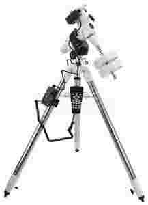Montaż EQ-5 GOTO Synscan marki SkyWatcher oferuje proste rozwiązanie za rozsądne pieniądze dla osób, ktore chcą wyposażyć swój teleskop w system wyszukiwania i śledzenia GoTo, lecz nie chcą potrzebują ciężkiego i drogiego montażu klasy HEQ5 lub EQ6. Montaż paralaktyczny EQ5 SynScan korzysta z podobnych rozwiązań co HEQ5/EQ6 i zawiera bazę danych ponad 13 tysięcy obiektów. Gwarantuje przy tym wysoki komfort pracy i precyzję wyszukiwania obiektów przy zachowaniu dużo mniejszej masy w stosunku do swoich większych odpowiedników. Montaż charakteryzujący się udźwigiem 9 kg umożliwia zamocowanie na montażu wielu instrumentów od małych refraktorów po duże ED120, Mak180 czy 8 calowego Newtona lub Schmidta-Cassegraina.