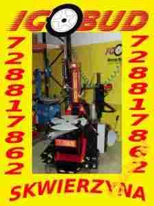 Montażownica do kół samochodów i dostawczych z opuszczanym stołem i inflatrorem z przystawką do kół niskoprofilowych