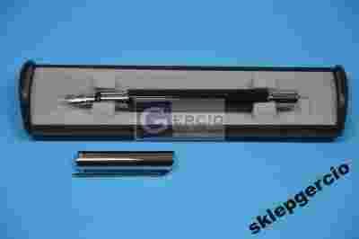 - 1 element: pióro wieczne w kolorze czarnym z dodatkiem srebrnego z wymiennym nabojem (kolor wkładu dołączonego-niebieski)