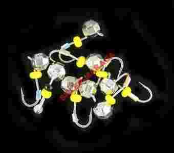 Kolor: Kula dyskoteka z grubym obramowaniem i uszkiem w kolorze SILVER-srebrnym, na haczyk założony jest żółty koralik.