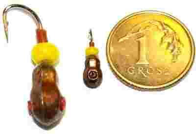 Ręcznie wykonana Tungusten mormyszka wolframowa z dziurką, osadzona na chemicznie ostrzonych japońskich haczykach firmy Maruto, malowana precyzyjnie i z dbałością.