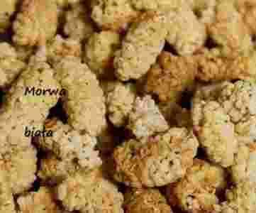 Morwa zarówno biała jak i czarna ma wiele cennych właściwości leczniczych. Jest owocem drzewa o lśniących, zielonych liściach i zawiera bardzo dużo cukru (20%) - głównie w postaci glukozy, sacharozy, maltozy i fruktozy. Mimo tak dużej zawartości cukru morwy mają bardzo mało kalorii – 100g owoców zawiera tylko 64kcal. Dzięki temu, że zawierają tak dużo łatwo przyswajalnych cukrów ludność zamieszkująca Himalaje suszy te owoce i przerabia na mąkę używaną do potraw. Morwa biała zawiera dużo kwasów organicznych, kumaryny, taniny, oraz związków mineralnych (wapń, żelazo, potas, magnez oraz fosfor), a także witamin (C, PP, B). Owoce te mają wiele cennych właściwości leczniczych – pomagają w leczeniu cukrzycy, kaszlu i gorączki, a także stosuje się je przy zaparciach i bolesnych kolkach jelitowych. Z suszonych owoców przyrządza się wywar: łyżkę owoców zalewa się szklanką wrzątku i podgrzewa na małym ogniu przez kwadrans. Należy pić ciepły – taki napar rozgrzeje każdego zmarźlucha.