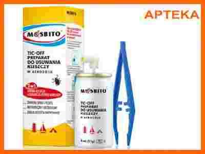 MOSBITO TIC OFF PREPARAT DO USUWANIA KLESZCZY W AEROZOLU 8ML Mosbito TIC-OFF Preparat do usuwania kleszczy w aerozolu 2 w 1 zabija kleszcza natychmiast jest nietoksyczny i bezbolesny opakowanie zawiera spray oraz pęsetę do usunięcia martwego kleszcza Jedno opakowanie wystarcza na usunięcie do 20 kleszczy. Skład Opakowanie zawiera: Aerozol (11g) z zaworem umożliwiającym aplikację ściśle określonej dawki. Pęseta do usuwania kleszczy. Uwagi: Produkt jest chroniony patentem. Stowarzyszenie Chorych na Boreliozę rekomenduje MOSBITO TIC-OFF jako jedyny dostępny w Polsce środek do nieinwazyjnego usuwania kleszczy z ciała nosiciela.