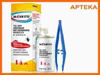 MOSBITO TIC OFF PREPARAT DO USUWANIA KLESZCZY W AEROZOLU 8ML Mosbito TIC-OFF Preparat do usuwania kleszczy w aerozolu 2 w 1 zabija kleszcza natychmiast jest nietoksyczny i bezbolesny opakowanie zawiera spray oraz pęsetę do usunięcia martwego kleszcza Jedno opakowanie wystarcza na usunięcie do 20 kleszczy. Skład Opakowanie zawiera: Aerozol (11g) z zaworem umożliwiającym aplikację ściśle określonej dawki. Pęseta do usuwania kleszczy. Uwagi: Produkt jest chroniony patentem. Stowarzyszenie Chorych na Boreliozę rekomenduje MOSBITO TIC-OFF jako jedyny dostępny w Polsce środek do nieinwazyjnego usuwania kleszczy z ciała nosiciela.
