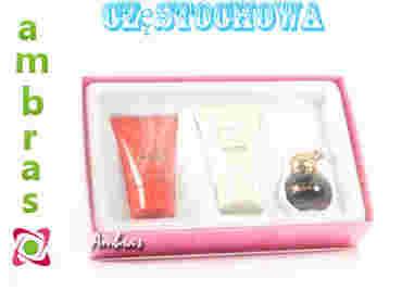 W zestawie: Woda toaletowa EDT bez sprayu 4.9ml - Balsam do ciała 25ml - Żel pod prysznic 25ml.