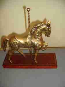 Mosiężny koń na drwnianej podstawie BCM mosiądz
