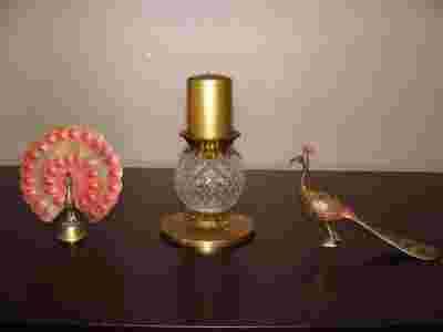 mosiężny pawie i świecznik