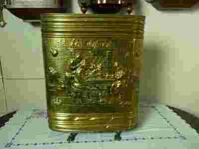 Mosiężny pojemnik ,parasolnik ze scenką rodzajową na lwich łapach.