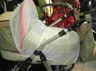 Uniwersalna moskitiera na wózek dziecięcy z białej siateczki, zakrywa cały przód wózka.. Zabezpiecza Maleństwo przed owadami, lekko osłania przed słońcem ,przepuszcza powietrze ale odgradza dziecko od otoczenia.