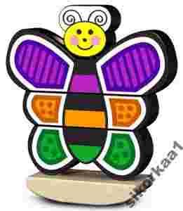 Ta pięcioczęściowa, klasyczna, drewniana pionowa układanka polega na prawidłowym ułożeniu motylka z klocków. Dla utrudnienia zadania, motylek umieszczony jest na półokrągłej podstawce.