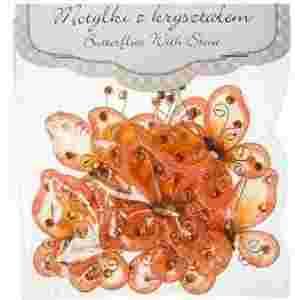 MOTYLE motylki z KRYSZTALEM 10szt 5cm POMARANCZOWE