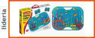 Walizeczka pełna kolorowych kołeczków, dzięki którym dzieci mogą tworzyć wspaniałe, kolorowe wzory. Wykonanie walizeczki jest bardzo praktyczne: podczas zabawy służy jako podstawa dla tablicy, a po zabawie można wszystkie elementy schować do walizeczki. Dzięki uchwytom, które przytrzymują perforowaną tablicę, dzieci mogą przenosić zabawkę. Zestaw idealnie sprawdza się w czasie podróży.