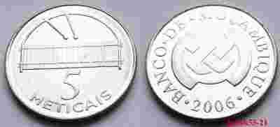 MOZAMBIK 5 METICAIS 2006 CYMBAŁY MENNICZA