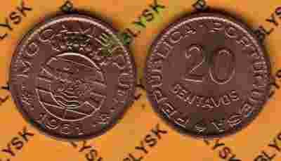 MOZAMBIK /KM-85/ 20 CENTAVOS 1961 Stan Monety I/-I