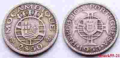 MOZAMBIK PORTUGALSKI 2,5 ESCUDOS 1953 RZADSZA