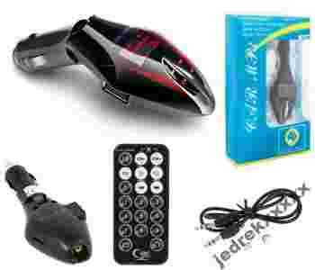 FM TRANSMITER Z GNIAZDEM USB, LINE-IN, WYŚWIETLACZEM I CZYTNIKIEM KART MICROSD + PILOT