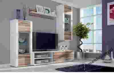 Meblościanka wykonana jest z wysokiej jakości płyty laminowanej w kolorze biały/baltimore.