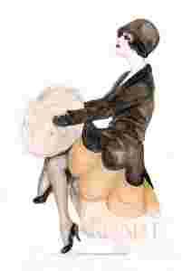 MUFKA dama retro OBRAZ AKWARELA art deco