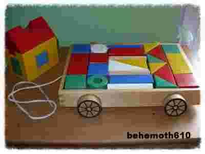 MULA klocki drewniane wóżek domek Ikea