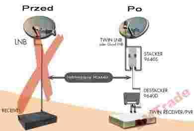Pomiędzy nadajnik a odbiornik (Stecker a Destecker) nie powinno się stosować żadnych innych urządzeń np. wzmacniaczy rozdzielaczy, zwrotnic.