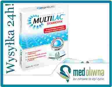 Właściwości: MULTILAC to nowoczesny synbiotyk zawierający dziewięć wyselekcjonowanych szczepów bakterii oraz składnik odżywyczy – oligofruktozę. Dzięki zastosowaniu innowacyjnej technologii MURE (Multi Resistant Encapsulation), obecne w preparacie MULTILAC bakterie charakteryzuje zwiększona odporność na niskie pH soku żołądkowego, sole żółci oraz enzymy trawienne. Umożliwia to ich adaptację oraz zachowanie wysokiej aktywności biologicznej. Zawarty w synbiotyku MULTILAC składnik odżywczy, stanowi źródło energii potrzebne do rozwoju bakterii, umożliwiając ich szybsze namnażanie się w przewodzie pokarmowym. MULTILAC nie zawiera mleka, laktozy ani kazeiny.