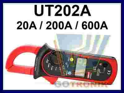 Miernik cęgowy UT202A umożliwia pomiar napięcia AC/DC, prądu zmiennego AC do 600A, rezystancji. Multimetry cęgowe różnią się od tradycyjnych możliwością pomiaru natężenia prądu zmiennego bez potrzeby przerywania obwodu. Multimetr posiada także funkcje ułatwiające codzienną pracę z urządzeniem: