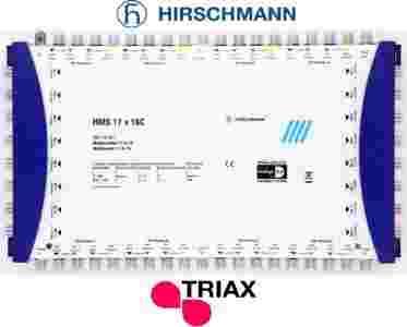 Multiswitch kaskadowy HMS 17x16C współpracuje z multiswitchami końcowymi Hirschmann CKR 17xXX i Triax TMS 17xXX T, przy użyciu tych urządzeń możliwa jest realizacja dużej instalacji SAT/DVB-T/FM nawet dla kilkudziesięciu odbiorców.
