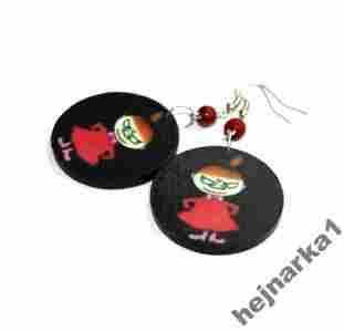 Kolczyki z drewnianych kółek zdobionych dwustronnie techniką decoupage.