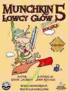 Dodatek zawiera 110 kart do legendarnej gry "Munchkin", w której zabijasz potwory, zgarniasz skarby i oszukujesz kumpli. "Munchkin 5 - Łowcy głów" wprowadza nową Klasę... Łowców! Mogą oni poskramiać Potwory i zamieniać je w Rumaki, dla jeszcze większych bonusów i Poziomów! Ale przede wszystkim to jeden z najpotworniejszych dodatków w historii - zawiera mnóstwo bardzo potężnych Potworów i bardzo wartościowych przedmiotów, czyli wszystko to, co Munchkini lubią najbardziej! Tak więc dokręć do swojego Latającego Dywanu wzbudzającą zazdrość u kumpli Indywidualną Tablicę Rejestracyjną, domaluj mu Wyścigowe Paski, przywdziej Talerzykową Zbroję i rusz na krucjatę przeciwko Prorokowi Orki Przymierza, wracajacemu z zaświatów Anubisowi i przerażającemu Bazyliszkowi. Wykończ ich, zgarnij ich wypasione Skarby, zyskaj Poziomy i wygraj - bez tego całego durnego odgrywania postaci. Uwaga: to nie jest samodzielna gra, do rozgrywki wymagane jest posiadanie gry Munchkin - edycja rozszerzona.
