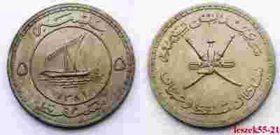 MUSCAT & OMAN 5 BAISA AH1381 RZADKA STATEK