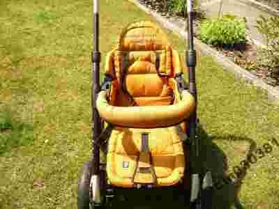 Możliwość dokupienia oddzielnie pomarańczowego zimowego śpiworka z owczej wełny w idealnym stanie, którego synek używał do tego wózka.