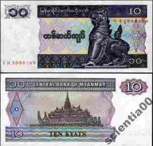 Myanmar 10 KYATS P-71 1996 UNC