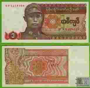 MYANMAR 1 Kyat ND/1990 P67 UNC OS