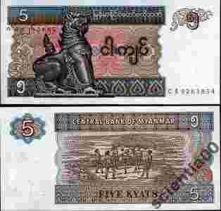 Myanmar 5 KYATS P-70 1996 UNC