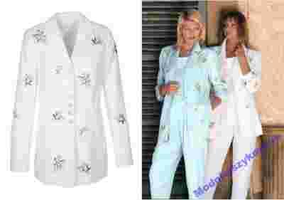 N466/13 BIAŁA DŁUŻSZA MARYNARKA Z HAFTEM R. 38