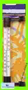 Skala termometru nadrukowana jest na tekturowej podkładce, umieszczonej w szklanej rurce, z dwóch stron zakończonej plastikowymi korkami