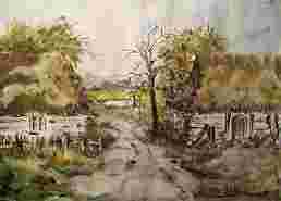 NA KOŃCU WSI ,akwarela, BCM