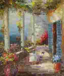 Na tarasie IMPRESJA - OLEJ na płótnie 50x60cm