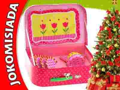 Śliczny zestaw zapakowany w uroczą walizkę, świetnie nada się na prezent.
