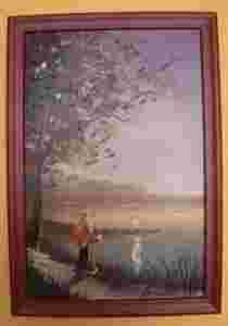 Nad jeziorem - obraz 20 x 30 w ramie - sygnowany