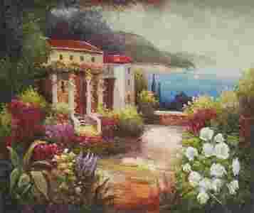 Dużej urody impresjonistyczny pejzaż malowany farbami olejnymi na płótnie.