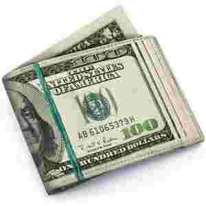 Portfel wykonany jest ze skóry z nadrukowanym wzorem 100 - dolarówki. Całość wygląda tak jakbyś nosił plik banknotów spiętych gumką. Przywodzi to na myśl nonszalanckich amerykańskich maklerów, którzy niedbale noszą gotówkę w kieszeniach swoim drogich marynarek. Pora poczuć się jak yuppie.