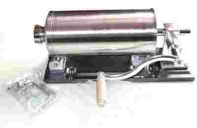 Ręczna nadziewarka do kiełbas renomowanej firmy Rossler o wielkości wsadu mięsnego 4 kg. jest idealnym urządzeniem do napełniania farszem osłonek przy wyrobie wędlin, przeznaczonym dla gospodarstw domowych oraz małych masarni lub sklepów mięsnych. Tuba jak i cała nadziewarka w której znajduje się farsz jest zrobiona ze stali nierdzewnej. Maszynka jest wyposażona w zestaw czterech lejków napełniających o rozmiarach 17,21,25,29 cm. dla każdego typu kiełbas. Nowość! Nadziewarka wyposażona jest w uszczelniacz silikonowy. Dzięki temu nie przepuszcza mięsa. Dodatkowo jeszcze jeden uszczelniacz dodajemy gratis! Nadziewarka zrobiona jakościowo, jest funkcjonalna i łatwa w czyszczeniu. Waga 5,3 kg. Prosta obsługa a zarazem bardzo przystępna cena sprawia, że z zadowoleniem będziemy z niej korzystać każdego dnia! Oryginalne opakowanie. Ręczna maszynka - nadziewarka jest idealnym urządzeniem do produkcji wędlin, przeznaczonym sklepów mięsnych i gospodarstw domowych. Nadziewarki umożliwiają produkcję szerokiego asortymentu kiełbas - od kabanosów po szynkową. Zobacz inne nasze przedmioty gdzie znajdziesz maszynki do mięsa o numerach 5 , 8, 10, 22, 32 dobre garnki i ekskluzywne sztućce i wiele innych przedmiotów dla każdego domu. Postaw na jakość i satysfakcję!