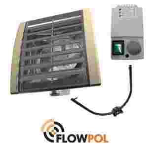 Ilość rzędów nagrzewnicy 2 Maksymalny wydatek powietrza [m3/h ] 5200 Zakres mocy grzewczej [kW] 30÷60 Przyrost temperatury powietrza*) [oC] 40 Maksymalna temperatura czynnika grzewczego [oC] 130 Maksymalne ciśnienie robocze [MPa] 1,6 Maksymalny zasięg powietrza [m] 25 Pojemność wodna [dm3] 3,1 Średnica króćców przyłączeniowych 3/4 Masa urządzenia [kg] 32 Napięcie zasilania [V/Hz] 1×230/50 Moc silnika [kW] 0,61 Prąd znamionowy [A] 2,8 Obroty silnika [obr./min] 1310 IP silnika 54