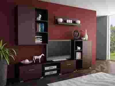 Meblościanka na wizualizacji jest w kolorze WENGE.